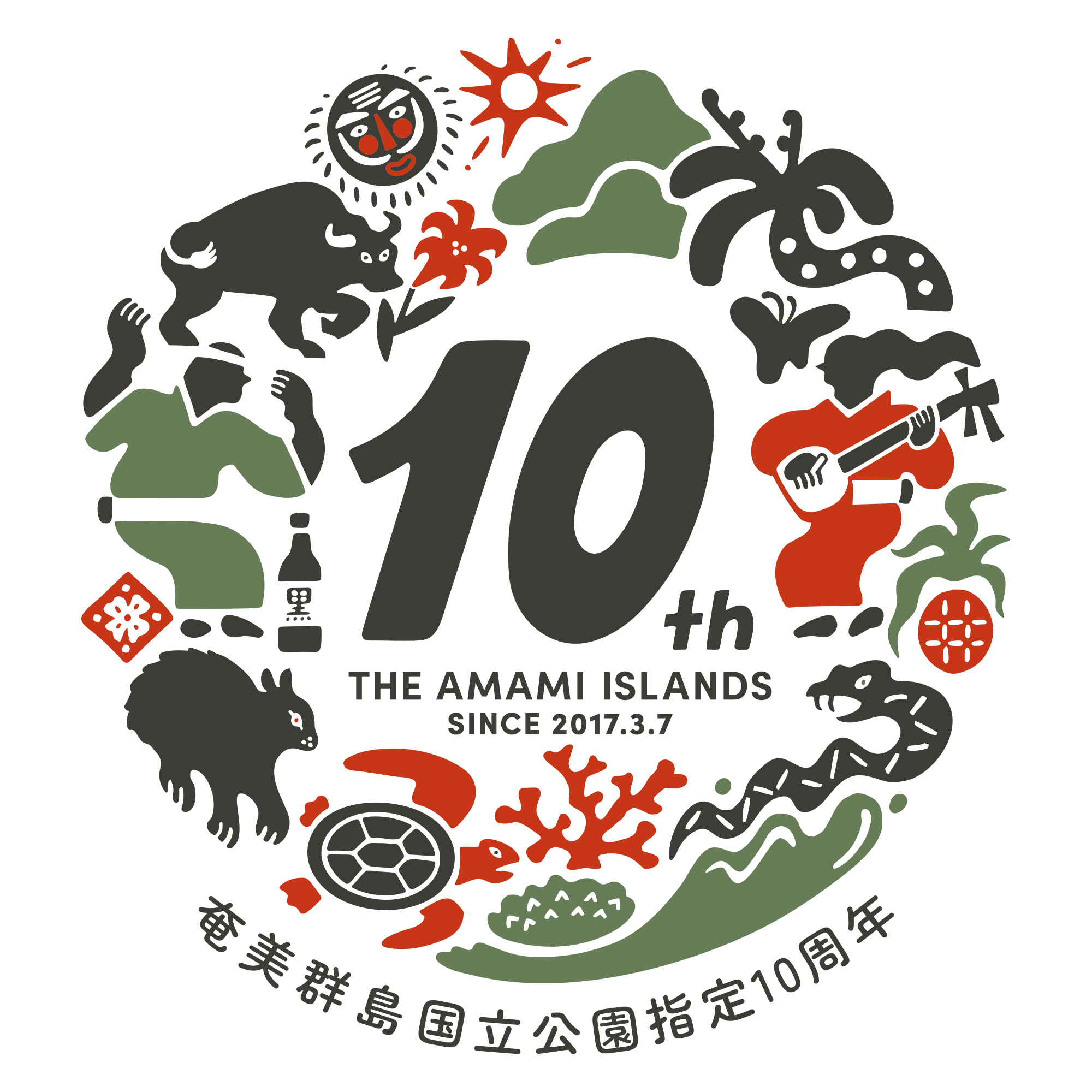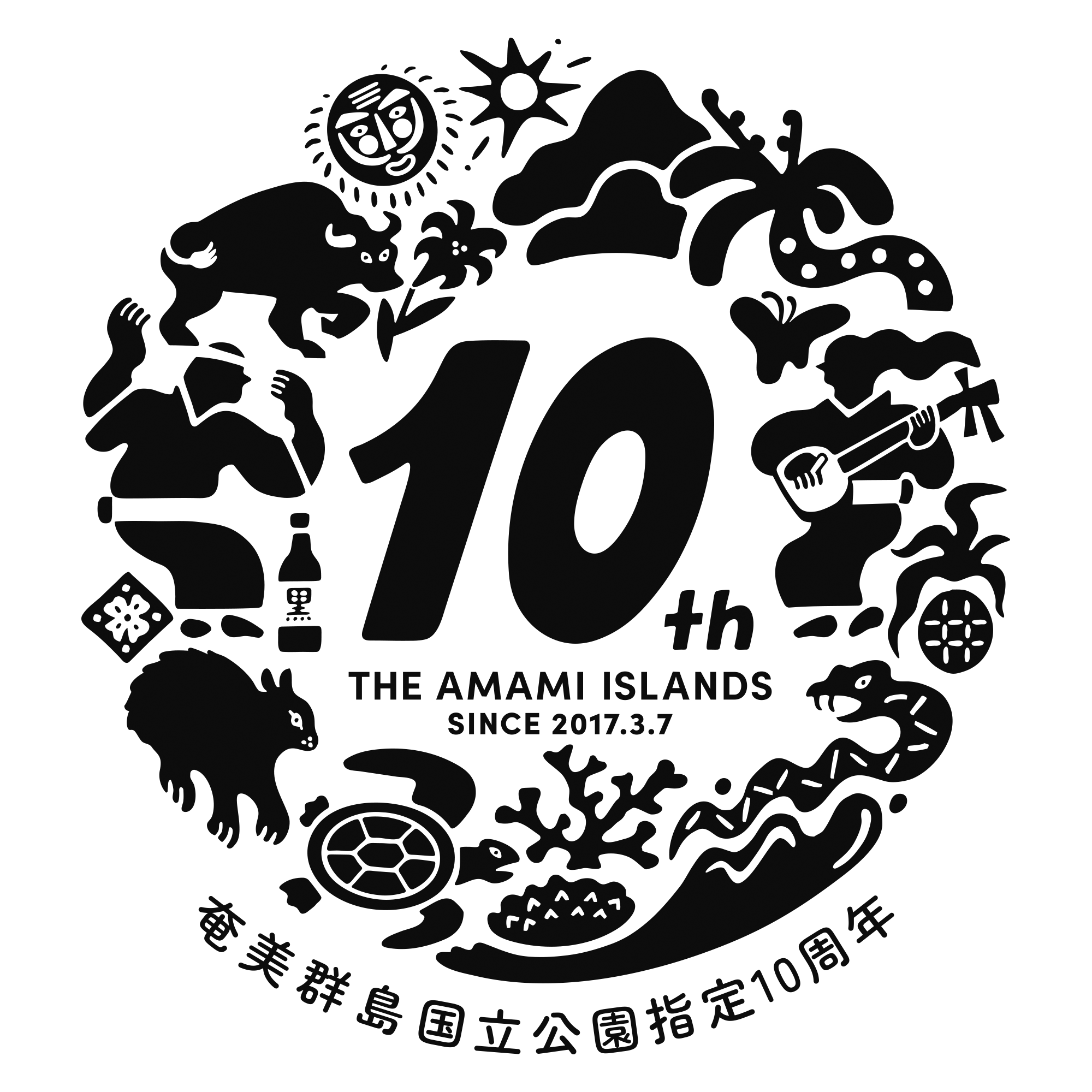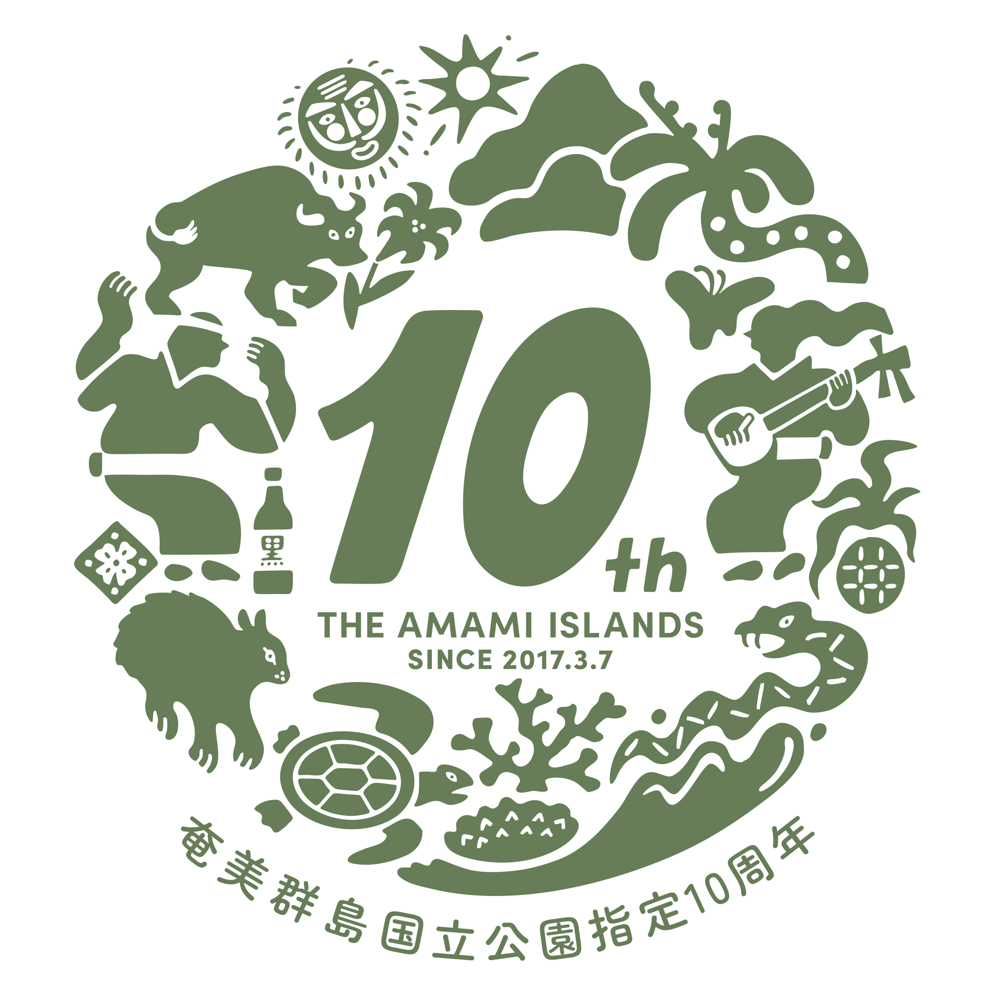 これを契機として、奄美群島広域事務組合では、令和10年(2028年)3月7日までの間、「奄美群島国立公園指定10周年」として、普及啓発に活用いただけるロゴマークを作成しましたので、お知らせします。